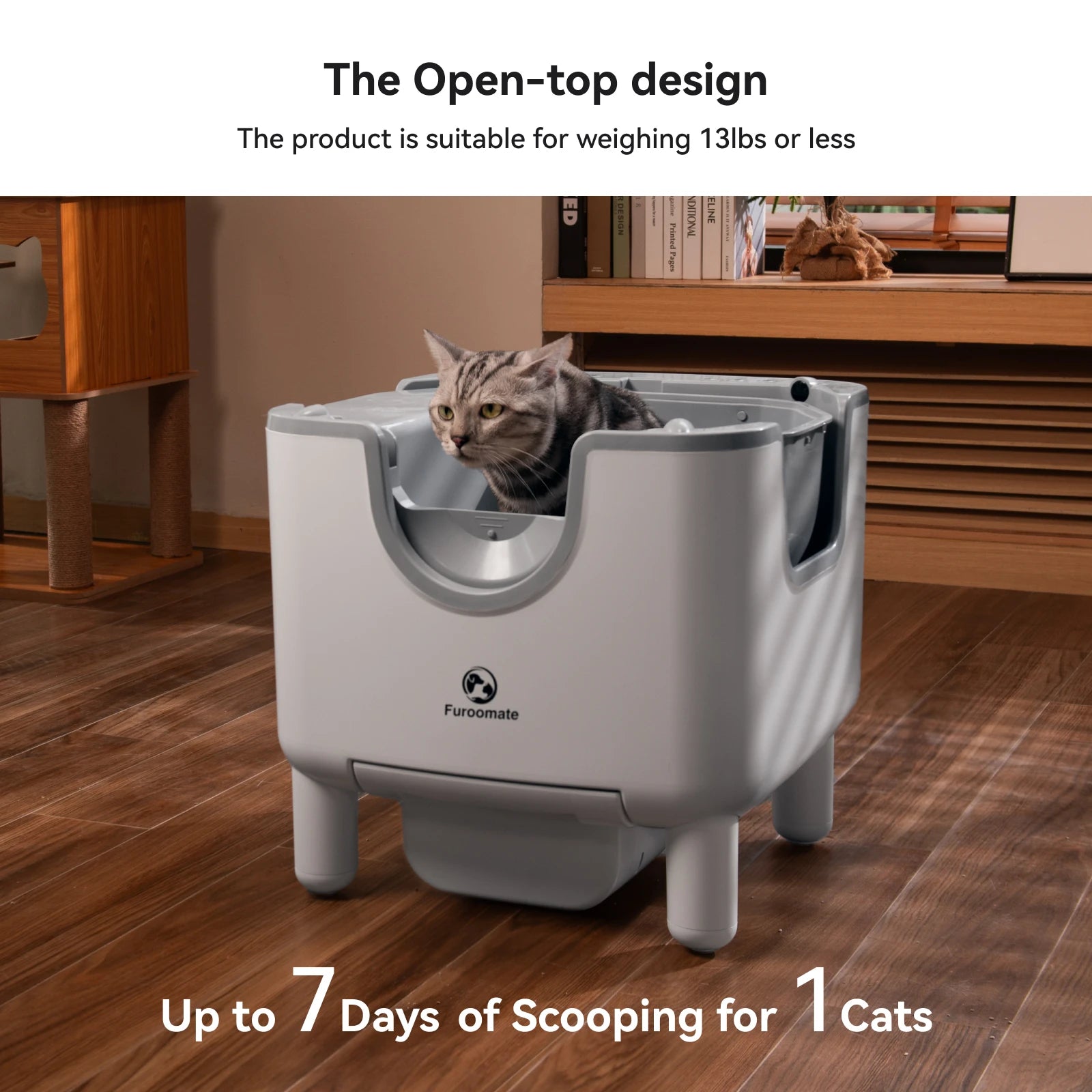F6 Self-Cleaning Litter Box - Open-Top Automatic Cat Litter Box with Odor Control, Safety Features, and Easy Maintenance